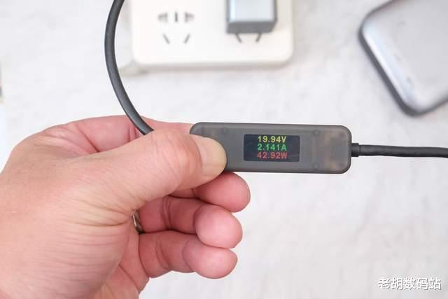 实测充电功率表现,用手上支持45W的充电宝进行测试,测试功率在42.92W,跟标称实际值相近,表现很出色。