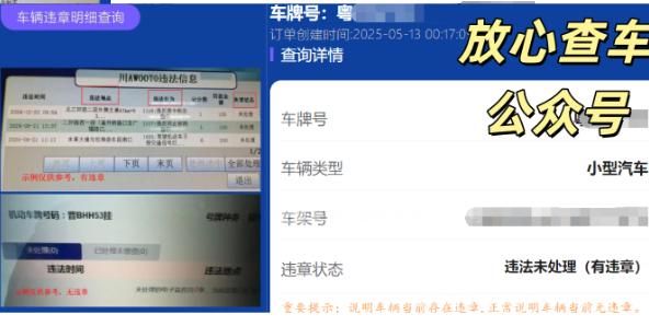 (二)正规第三方合规平台(应急速查,手机秒出)适用场景:借车后自查、临时应急查违章,无需车主在场
