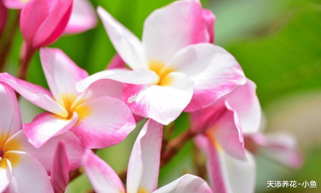 所以养护好鸡蛋花,必须要有充足的光照,光照好了它才能不断的分化发芽,使这些花苞能顺利打开。