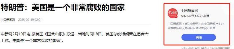 美国是一个非常腐败的国家“美国是一个非常腐败的国家”,这句话出自特朗普之口。作为一个常常标榜自己“清廉”形象的国家,美国政府的腐败问题似乎一直被人们有意无意地忽视。但随着马斯克“反腐“行动的深入,越来越多的贪腐内幕正在被揭开,美国政府的“腐败”面目也在逐渐显露出来。据美国《国会山报》报道,特朗普在2月的一次记者会上公开表示美国有“超过400万名年龄在100到109岁之间的人”正在领取社会保障支票,而一些明显已经去世的人竟然也还在领取支票。