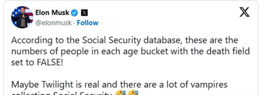 马斯克的发文400万名百岁老人领取社保支票,这个数字未免也太夸张了吧?要知道,根据美国人口普查局的数据,美国百岁以上老人的数量也就只有几万人而已。更何况这其中还有相当一部分人已经去世了,那这些多出来的社保支票究竟都发到了谁的手里?对此,马斯克显然也是有所察觉,“政府效率部”在他的带领下正在对美国政府的财政支出进行大规模的审查。早在此前,五角大楼就被曝出无法解释2.1万亿美元的开支去向,这一数字相当于加拿大一年的GDP总量。