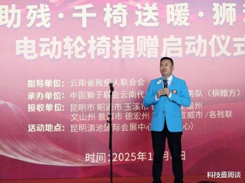2025年12月8日下午14时,“云狮助残·千椅送暖·狮动云南”电动轮椅捐赠仪式在昆明滇池国际会展中心隆重举行。本次活动由中国狮子联会云南代表处57支服务队参与,同时联合了全国11个代表处及广东、深圳狮子会共同发起,旨在为云南省残疾人朋友捐赠1000台电动轮椅,总市值约350万元,助力他们走出家门、融入社会、实现自我价值。