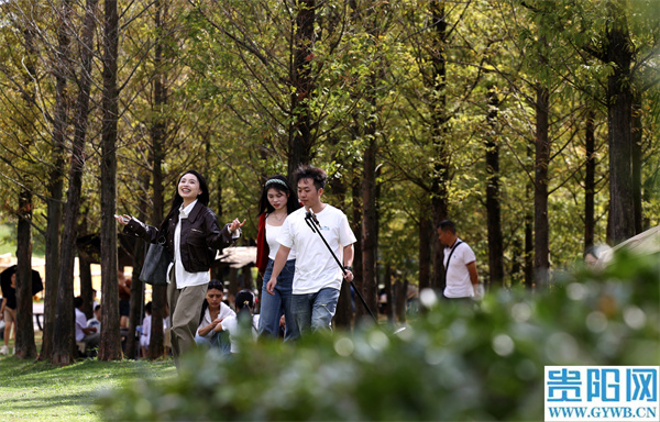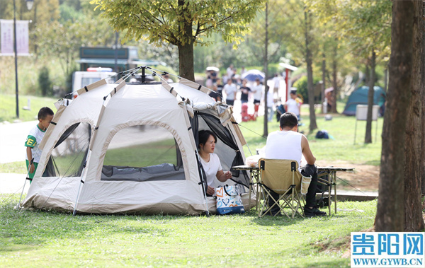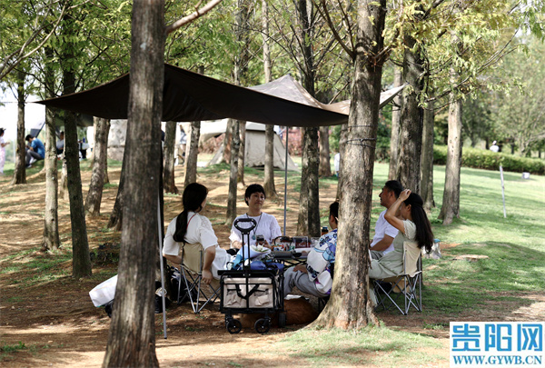 中秋节假期间,贵安新区月亮湖公园附近的贵安大道旁停满了一辆辆车,前来的游客络绎不绝,这里成为众多市民、游客就近游玩的选择,一家人在绿色盎然的公园里散步、露营,欢声笑语,享受惬意的休闲时光。