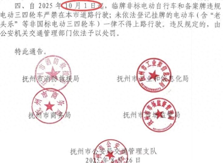新的电动车国标9月1号就开始执行了,然后10月份各地就开始动真格的,听说有些地方特别狠,江西抚州直接一刀切,10月1号开始,所有临牌或者备案牌的电动车、三轮车、四轮车,直接不让上路,这也太绝了吧,还有那些没牌的车,查得更严,抚州市公安局交通支队牵头,五个部门一起搞,那阵仗,想想都可怕。