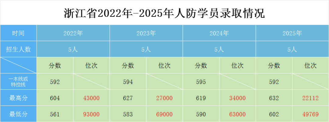 以下是人防系统定向招生近年来对浙招生的录取分数线,快来看看吧!