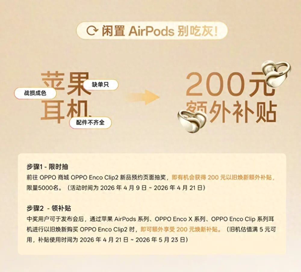 今天,OPPO宣布了AirPods以旧焕新计划。用户可以通过闲置AirPods参与活动。
