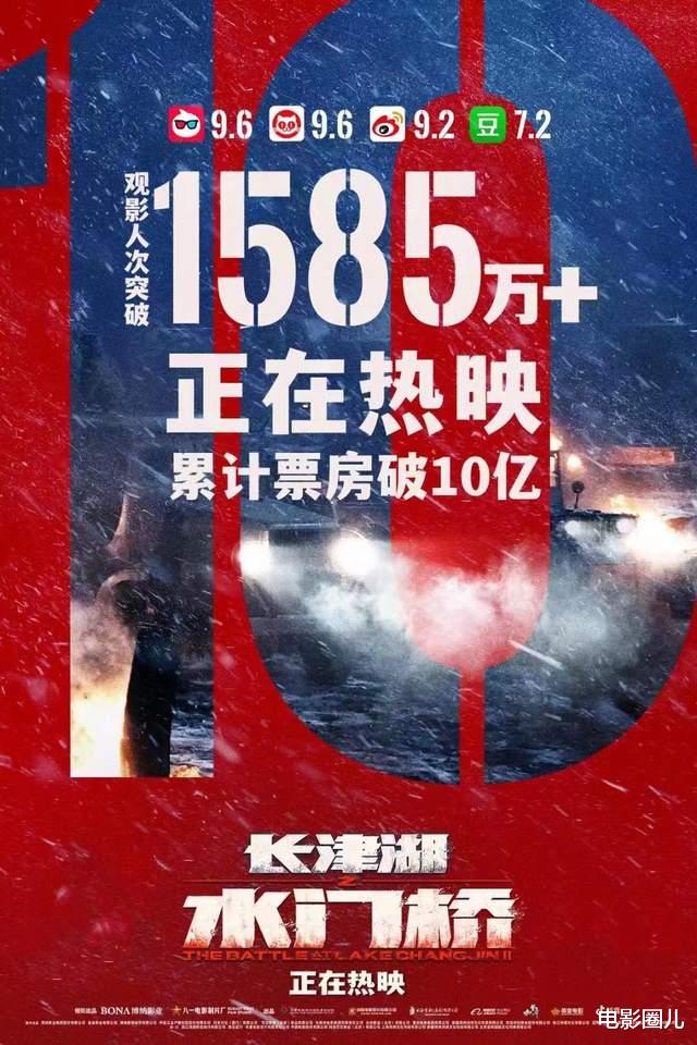 毫无疑问,《水门桥》春节档冠军已经稳了,目前其累计总票房已经突破10亿大关,最终票房强势向影史纪录发起冲击,剑指60亿!
