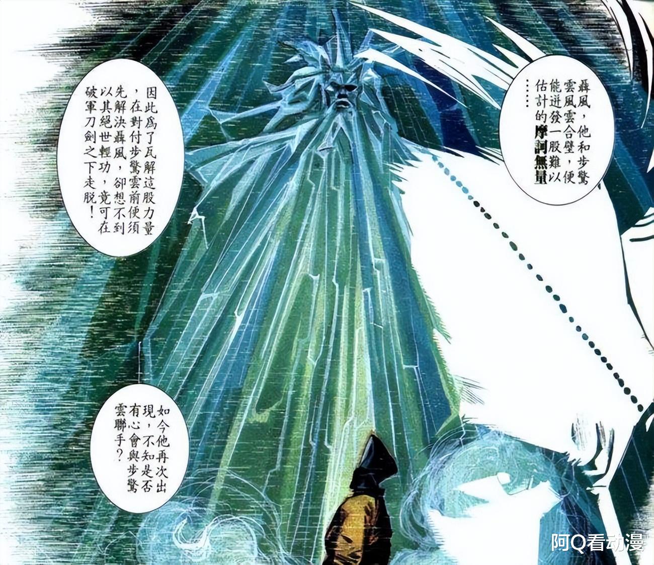 第二,千年积累的战斗智慧与保命底牌,是断浪无法比拟的。 断浪再聪明,也不过几十年的人生与战斗经验。帝释天活了上千年,其见识、应变能力和战斗诡计,深不可测。更重要的是,帝释天胆小惜命,他的保命能力很可能是《风云》全书第一。尤其是那招能将身体化为粒子,在任何地方重组的 “七无绝境” ,堪称因果律级别的闪避技能,理论上能免疫一切物理甚至能量攻击。虽然漫画里这招后期被剧情“封印”了,但若真生死相搏,帝释天没理由不用。试想,断浪力量再强,打不中人又有何用?而帝释天完全可以用各种诡异武学不断消耗、试探,寻找一击制敌的机会。