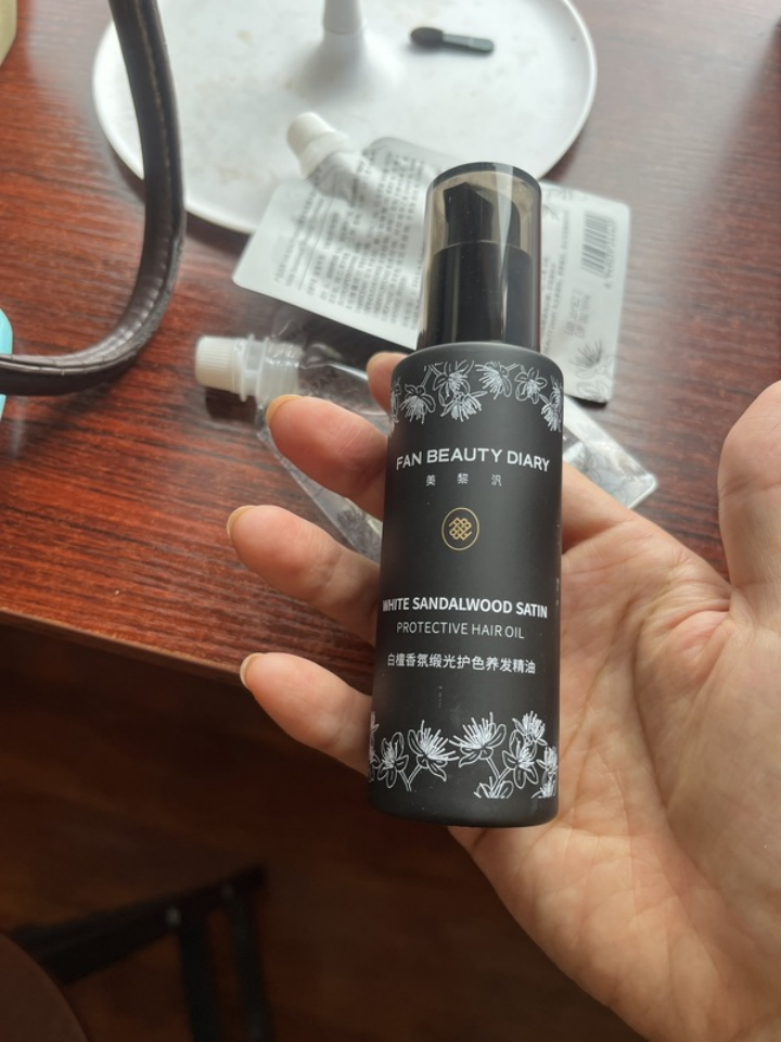 FAN BEAUTY 护发精油,其实我买它纯粹是因为那天凑单满减顺便带回来的,结果翻外包装才发现这牌子是2018年推出的国产品牌,路线偏年轻化,常见于电商平台上新榜单,产品方向集中在造型后的养护环节,瓶子有点像香水瓶但更敦实一点。