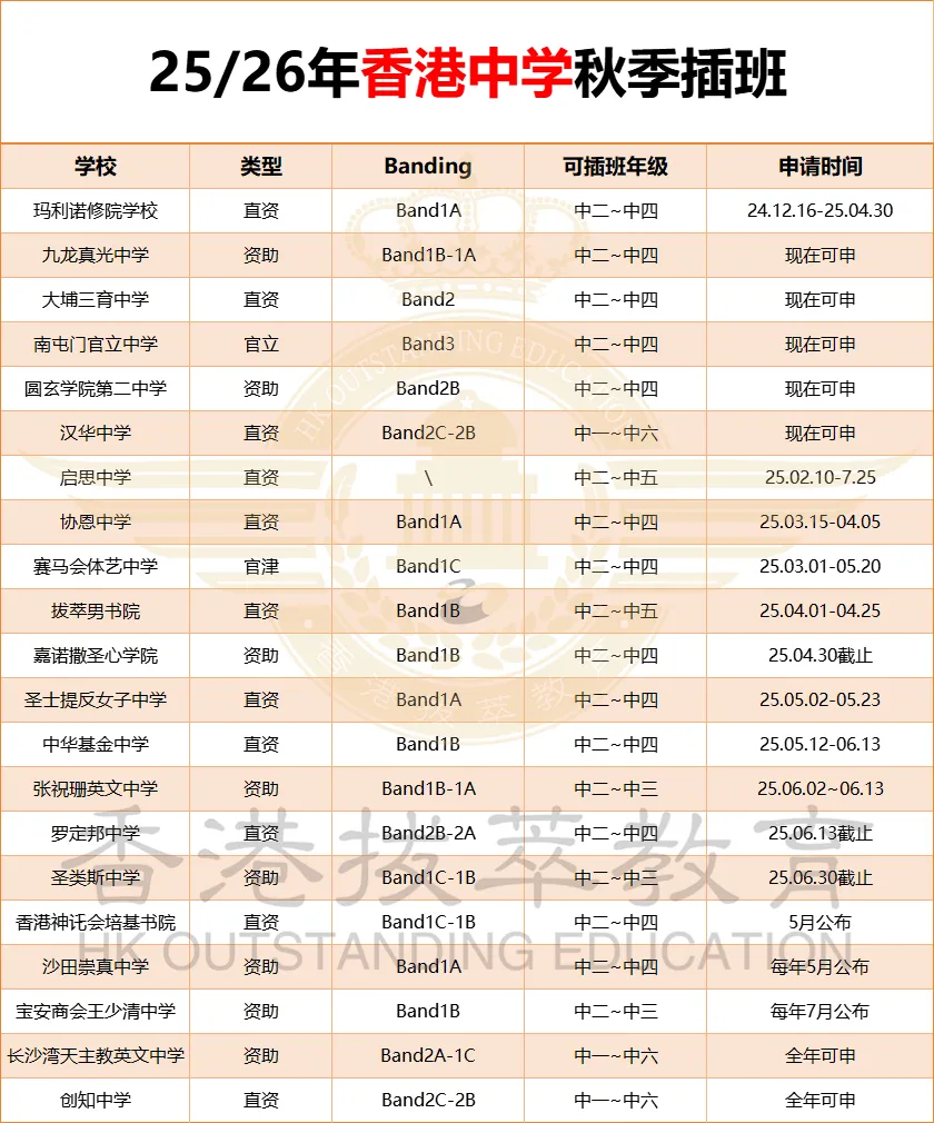 补充一个知识点,两个关键时间点也就是升学关键时期,如果打算带孩子来香港中学插班,千万别错过时间。