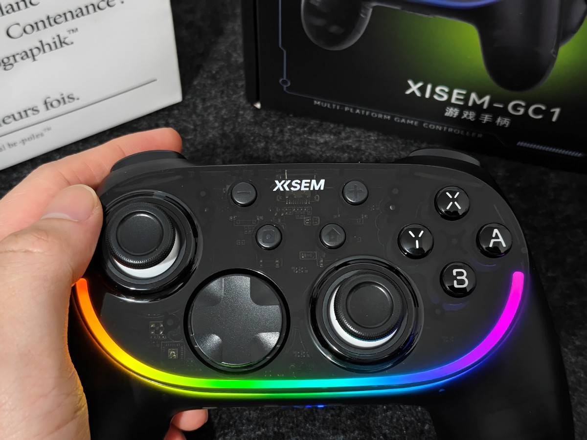 在配置表现上,西圣GC1同样强悍,搭载电竞级极速连接引擎,1000Hz回报率+智能抗干扰算法,将延迟降至0.5ms,支持2.4G/蓝牙/Type-C三模,兼容Switch、PC、手机,实现“所想即所控”。原生六轴体感传感器可捕捉旋转、倾斜和挥动等动作,1ms级低延迟与1:1映射带来沉浸式操控体验。手柄轻量化214g、握角15°、NanoSkin防滑涂层,长时间握持舒适稳固。半透明幻雾晶透机身+10种RGB灯效,科技感与美观兼具,同时耐磨防指纹。