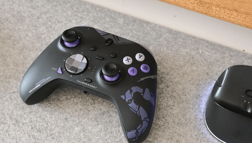 标配磁吸面盖、替换摇杆 / 十字键及充电底座,支持六轴体感与宏编程。操控精准度够用,振动反馈层次一般,长时间握持偏宽,小手需适应。