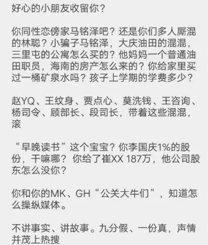 他称自己是在另起一段的“混混”名单里,不是上一段的“男宠”名单,直接锤死了李国庆的同性恋传闻。