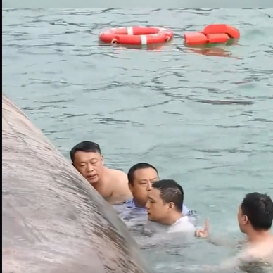 景区的工作人员,也慌慌张张地,拉着绳子,与此同时举着竹竿,用力地往外捞人。
