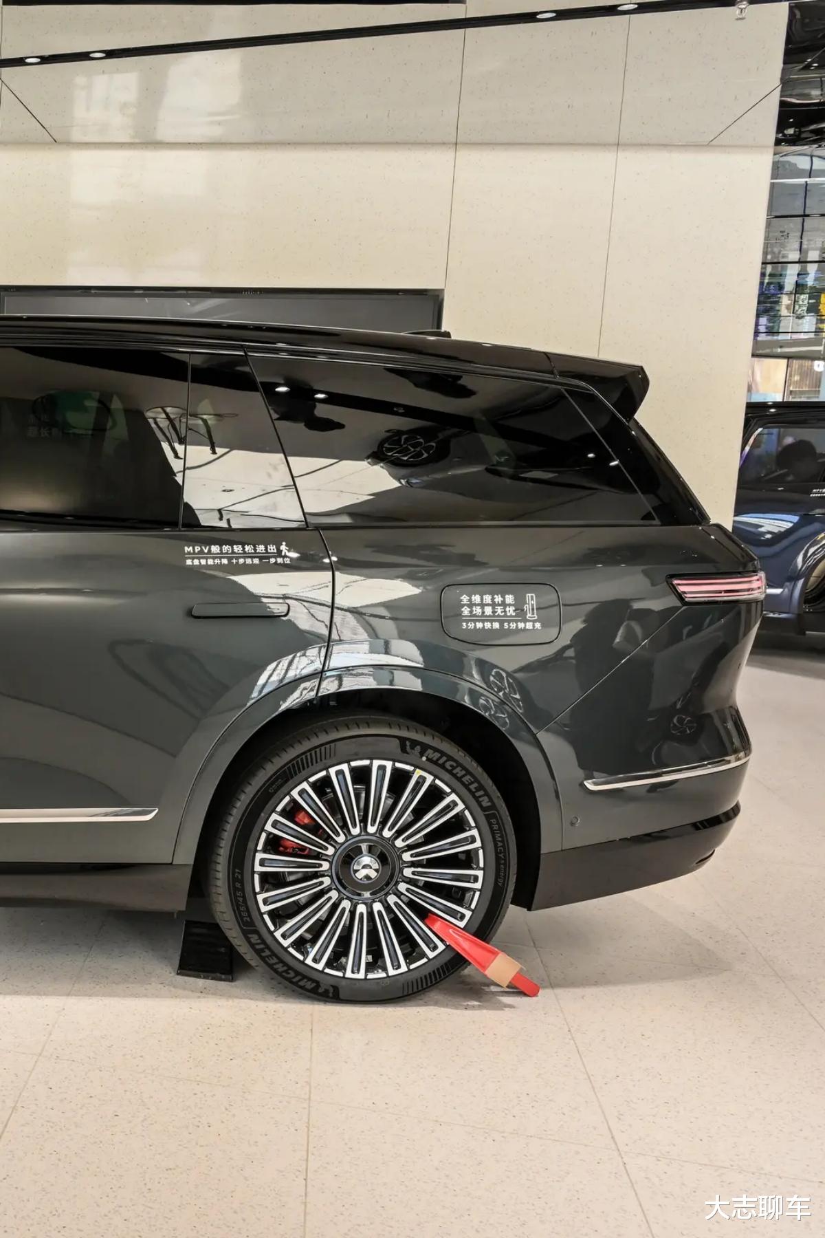 首先,就是蔚来ES8的轮胎,低配用的是265/45 R21,而顶配是265/40 R22,看着是挺好看的,轮胎体积也很大,看着也倍有面子,但是,你忽略一件事情,就是蔚来ES8车身很大,重量也不小,一度来到了2.6吨重,满载更是飙到3.2吨,这样大的体积,同时也就意味着轮胎磨损也会跟着很严重。