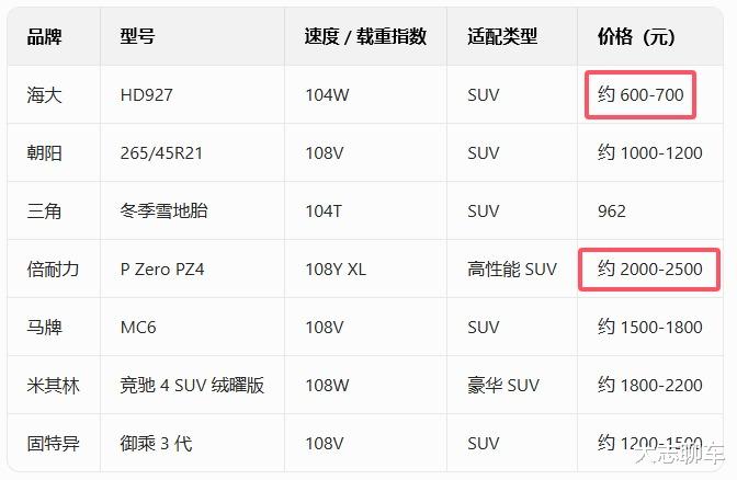 具体要花多少钱,我也已经给整理成了一张表格,详细找了找网上的轮胎报价,最便宜的海大轮胎,报价一条在600元左右,而最贵的倍耐力的,轮胎在2000元以上,也就是说,你四个轮胎一起换,最便宜也要干出来2000多以上,最贵,分分钟给车主干到七八千上去了,因此,如果你买车就要考虑这个隐形开支了。