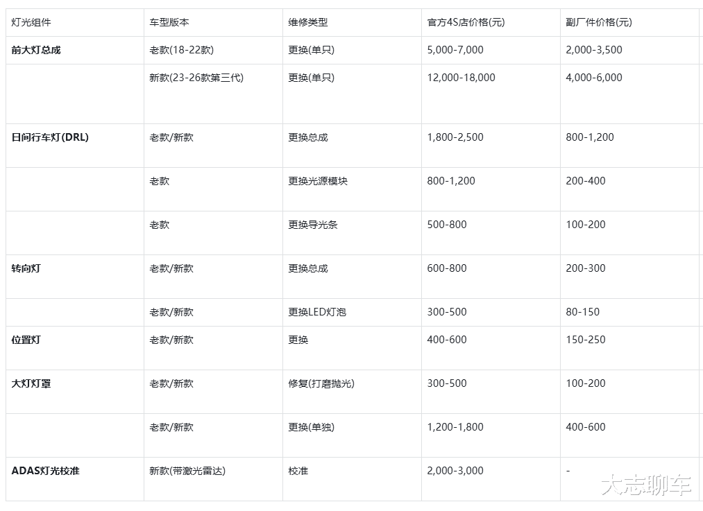 不单单是轮胎,你也得小心一下蔚来车上的前后大灯和贯穿式尾灯,一旦损坏的话,同样也要面临天量的维修成本,换个总成起码上万元,还有什么位置灯啥的,少说也要大几百块钱的支出,一旦你发生车祸被撞了,这个维修成本绝对够你喝一壶的,特别是三代采用的激光大灯的维修成本,哪怕是副厂件也要4000块钱起步了。