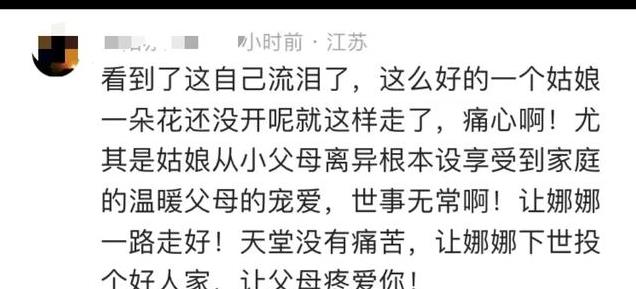 有的网友说看到卜娜娜母亲的留言表示:“自己也哭了,这么好的一个姑娘还是一朵花,怎么就这样走了,卜娜娜小时候父母就离异,没有享受到原生家庭的温暖,父母的宠爱”。