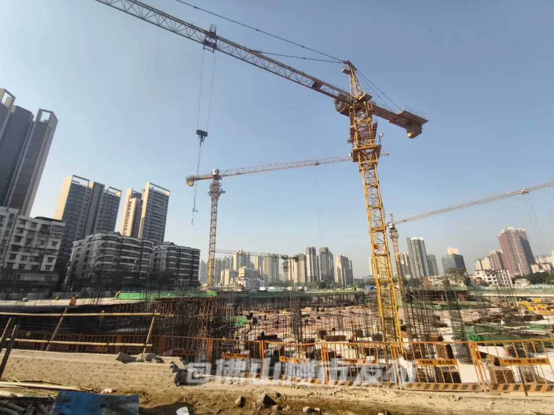 一下朝安地铁口,便能看到朝东一号旧改项目的商业地块——即金铂商业总部的施工现场。