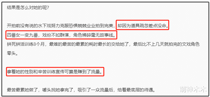 更离谱的是在她满心欢喜期待第三部拍摄时,在发布会上才得知她演绎的角色被写死了。不少网友看后表示太惨了,对不起蒋璐霞的付出,希望电影扑街。而且,为之前出谋划策"多宣传女性赚票房"的行为道歉。春节档电影几乎是全男阵容,蒋璐霞是少有出彩的女演员,片方拿她当主要宣传就被指责宣传诈骗。