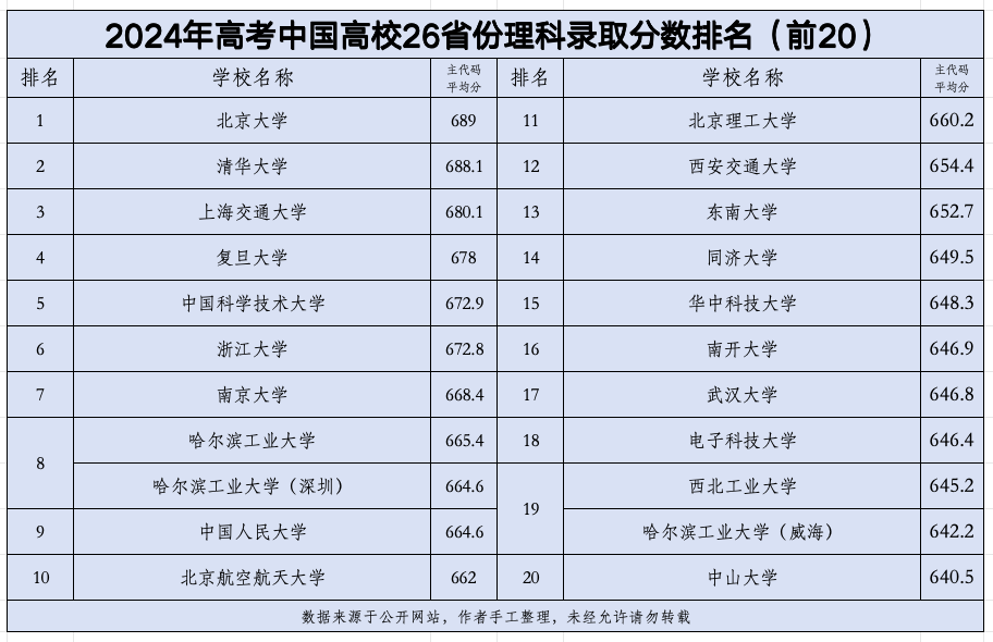 在2024年的高考录取分数榜单中,北大以录取平均分689分,毫无悬念夺得了第一的宝座。