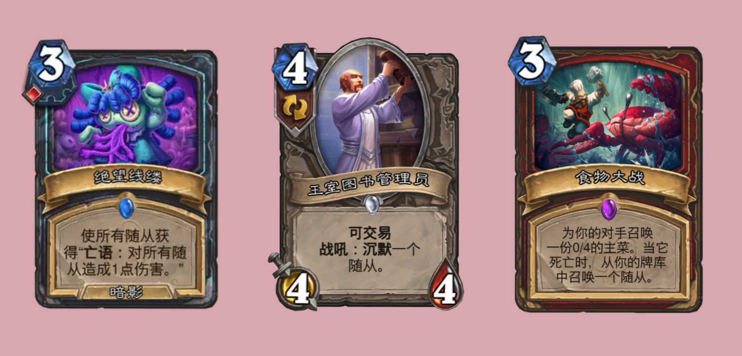 因为没开出橙卡等原因,还有挺多有意思的卡组目前还没有体验过,比如灌注德,瓦洛术,灌注萨,灌注牧等等卡组,不过目前来看这些卡组的强度应该算是稍差一个梯队的。尤其是灌注牧,清风凌晨玩龟瞎的时候匹配到一个灌注牧,前期灌注了一两次,然后就一直摇技能,发现到的牌用不出来弃掉,本来我防护水晶都沉底了,结果对面毫无还手之力,光靠魔种体系就直接推平了,从论坛的反馈来看,大家也普遍觉得灌注牧很弱,目前牧师也是胜率吊车尾了,玩牧师的也基本还是在玩星灵牧,所以设计师到底是哪来的自信觉得灌注牧强到要预防性削弱拉兹啊……