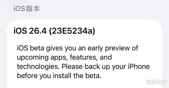 我们主要看看 iOS 26.4 Beta 4 的更新内容,这个版本的版本号是 23E5234a。