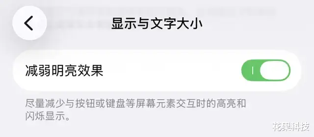 之前测试版中新增的减少高亮标记效果开关,在这个版本已经改成了「减弱明亮效果」开关。