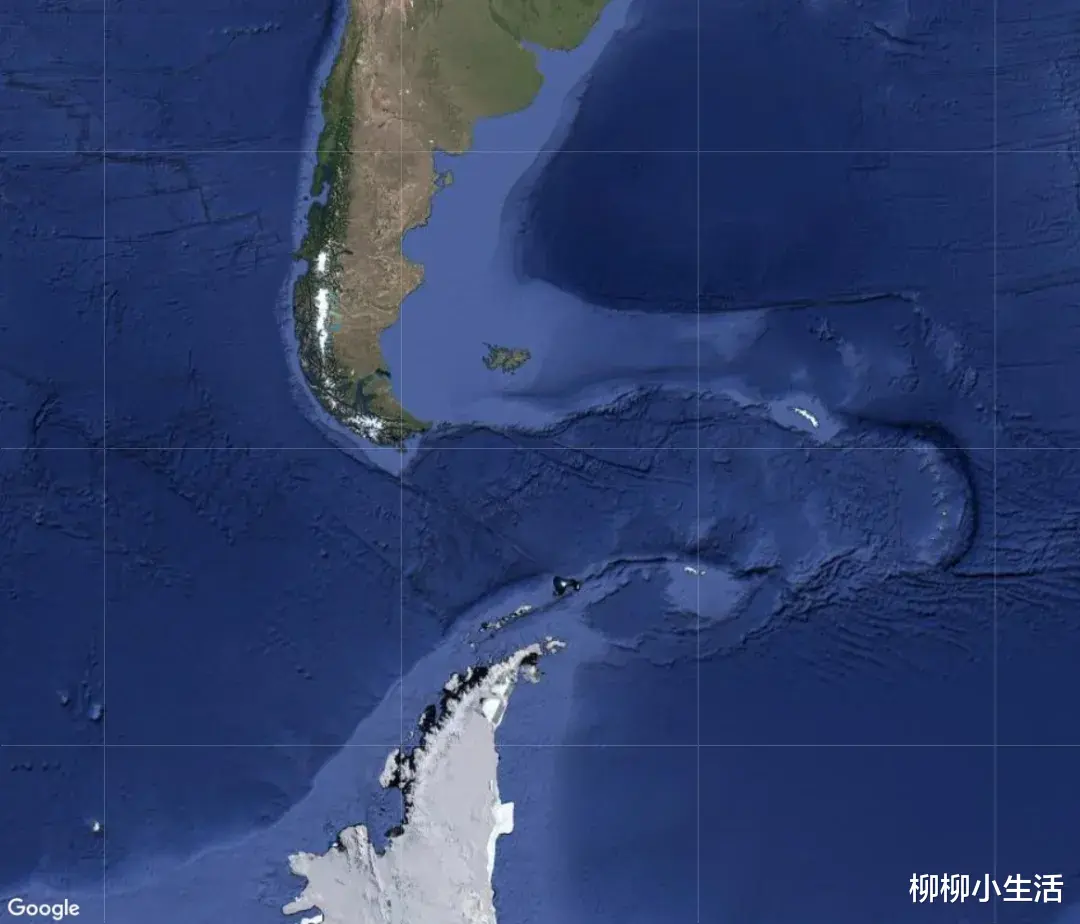 德雷克海峡两边,南美洲和南极洲的细长半岛,海峡内的岛屿分布很奇怪,都往右侧弯曲,地图上看起来,像是被什么东西从太平洋冲撞出来的。