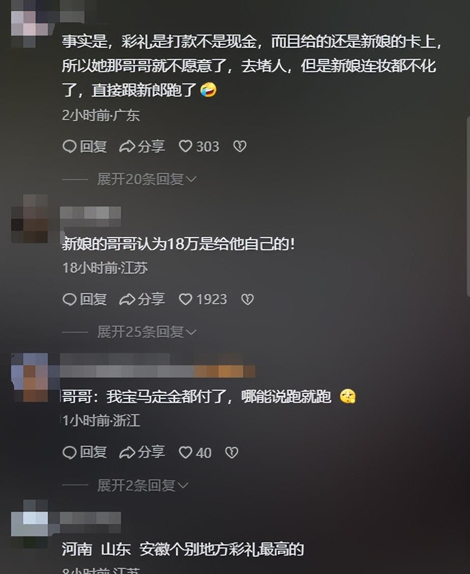 很多网友都对这种临时加价的做法表示不满,认为彩礼本是男方对女方家庭的表示,哥嫂这么强硬地索要彩礼钱,完全没有道理。