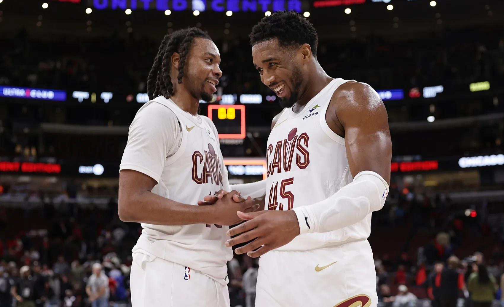 比赛首发骑士:韦德,莫布里,阿伦,加兰,米切尔。