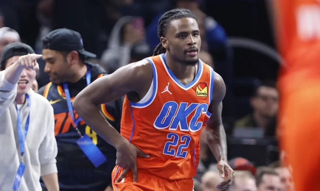杰伦在第一节就拿到7分。半场比赛结束,他拿到13分,是雷霆发挥第二好的球员。在第二节,他打进一记非常关键的上篮,帮助雷霆反超比分。