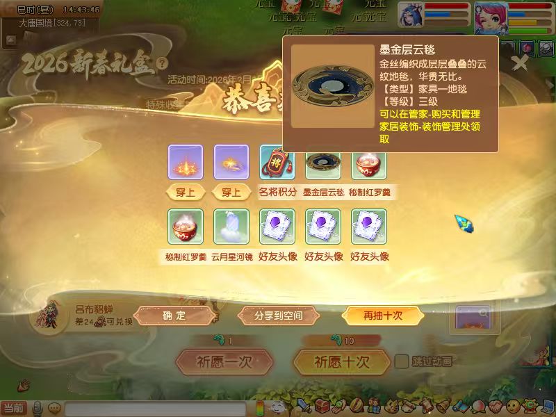 还有个小惊喜,这次新锦衣支持特殊染色,只要染出全套月白或墨黑,就能解锁全新的羽袂“风致”效果,灵动又飘逸,我已经开始攒仙玉,准备给五个号安排染色,到时候组队站街,绝对是长安城最靓的仔!另外提醒一句,除了直接购买,还能通过宝象国的新春祈愿玩法抽取,88仙玉一次,有概率出锦衣,非酋兄弟建议直接冲绑定款,省心不踩坑👏