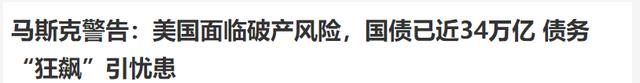 参考资料:新华社 2024-08-01《马斯克警告:美国面临破产风险,国债已近34万亿 债务“狂飙”引忧患》