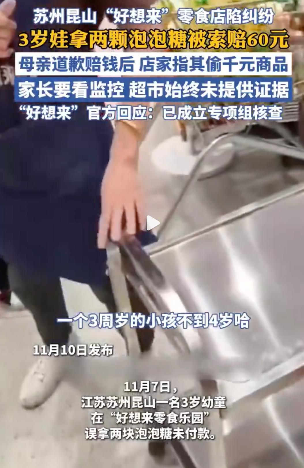 这“3岁幼童拿泡泡糖没付款”的事儿闹得可不小,还上了热搜。小孩拿了两块泡泡糖没付款,妈妈发现后及时送回还按60元赔付,结果店家说最近丢几千元商品都是这小孩拿的,双方就起了争执,员工一句“小孩从小不教育,长大后要坐牢”,家长觉得是辱骂。