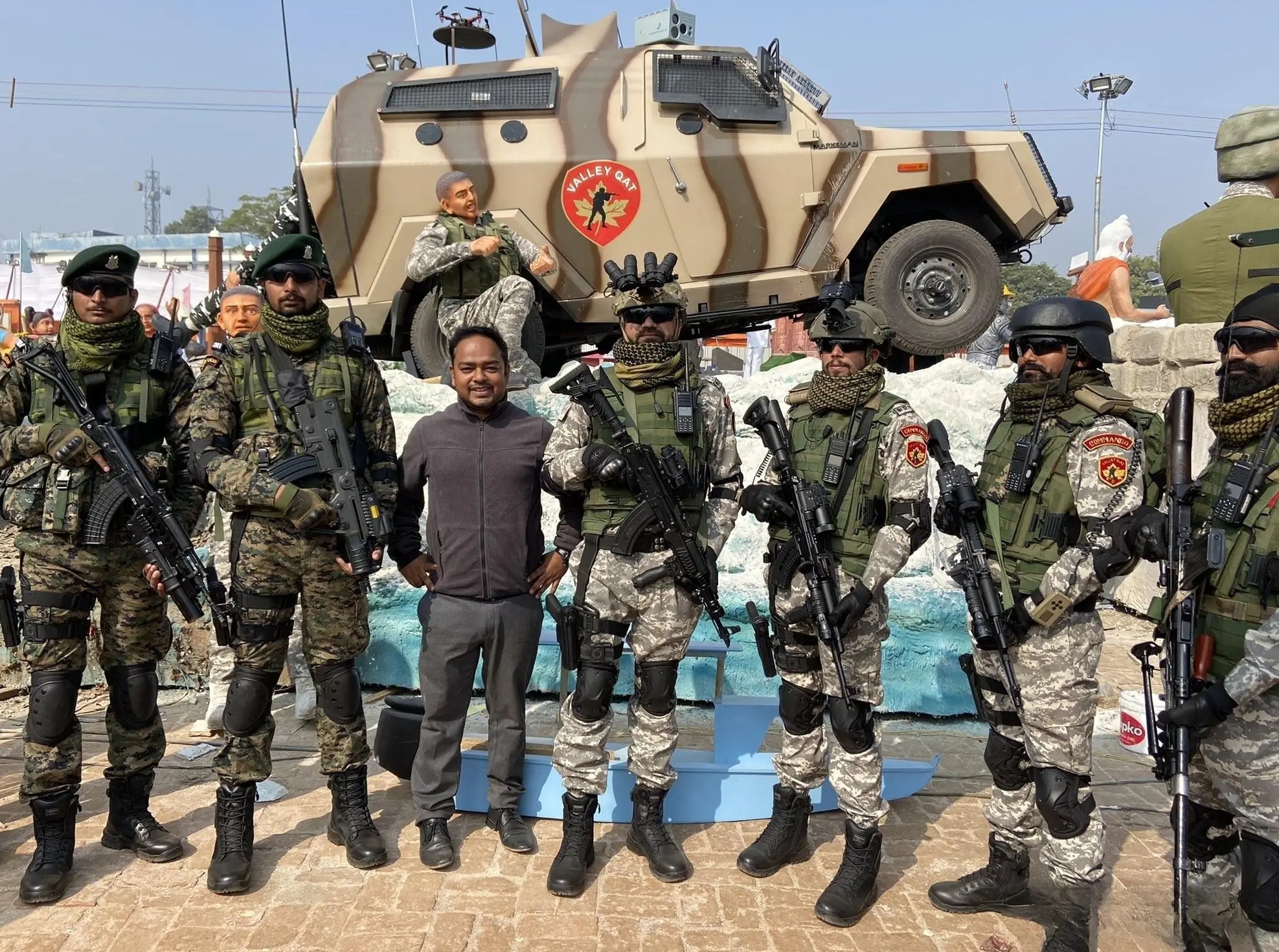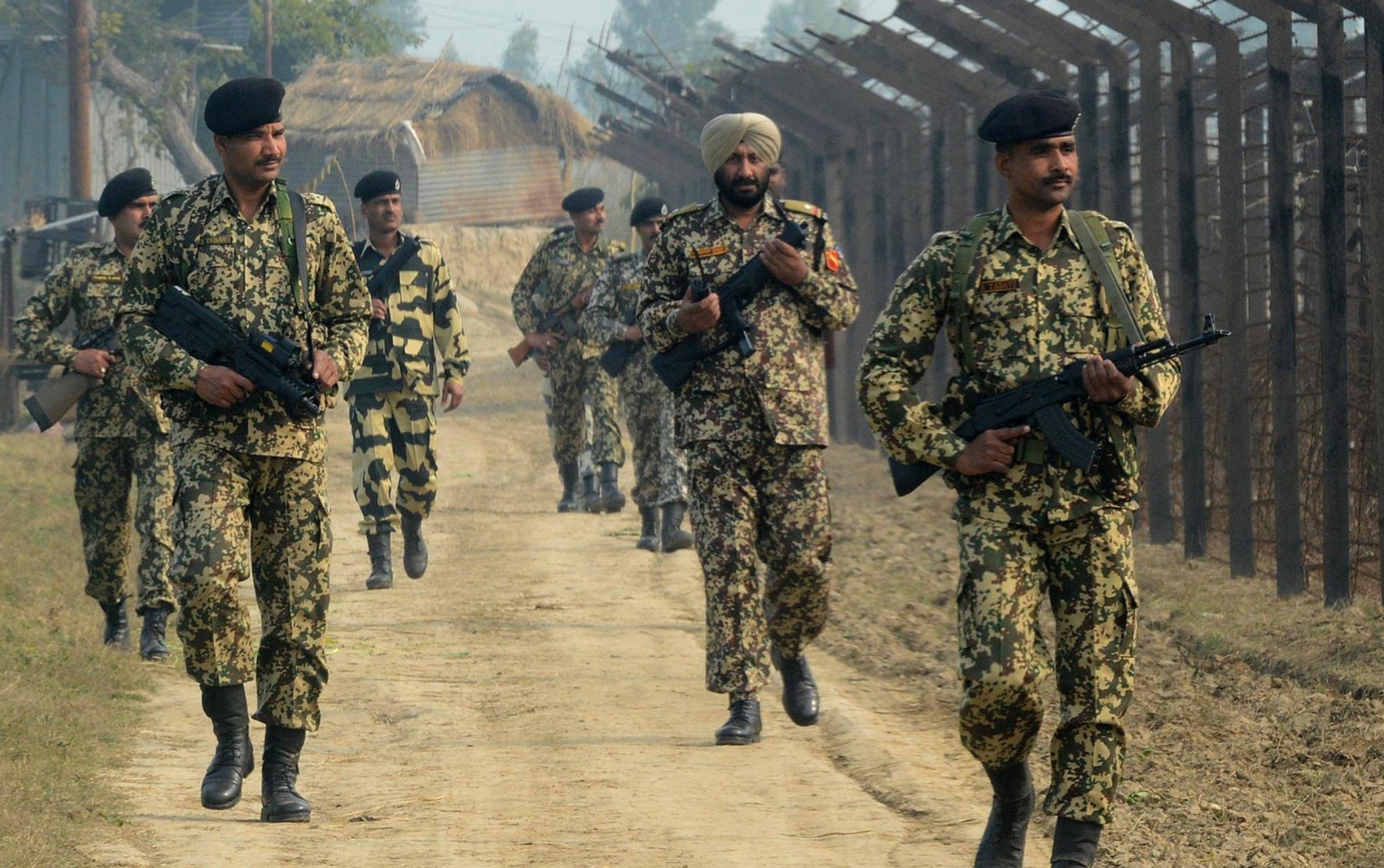 例如上述图片中,这支在边境巡逻的印度边境安全部队(也有可能是印度中央武装警察部队和印度边境安全部队协同巡逻)就装备着AK-103、TAR-21、英萨斯等三款突击步枪,以及一款SSG-69狙击步枪和一款冲锋枪。