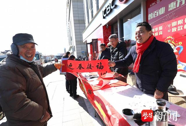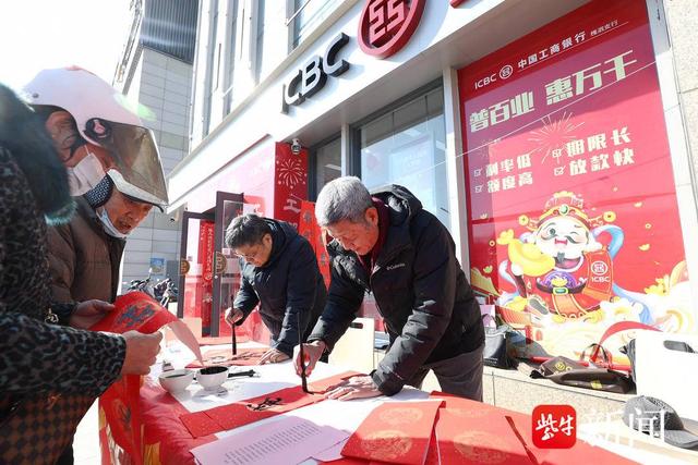 扬子晚报网1月11日讯(通讯员 赵红伟 记者 陈咏)10日,蛇年春节即将到来之际,工商银行扬州分行组织书法家和书法志愿者走进邗江区槐泗镇,在工行槐泗支行开展“蛇舞迎新春 工行送万福”志愿服务活动。现场书写春联、赠送“福”字,传承中华传统文化,向市民群众送上美好的新春祝福。
