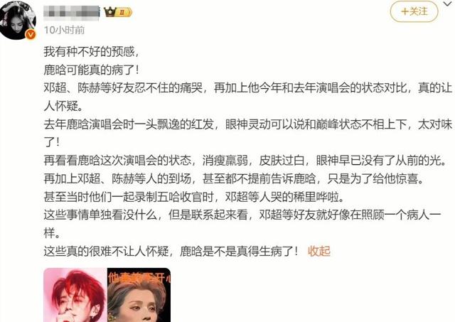 鹿晗的状态,加上邓超和关晓彤的反常行为,网友们不得不怀疑鹿晗是真的患病了。当然,一切也是网友猜测,或许也是过度解读。