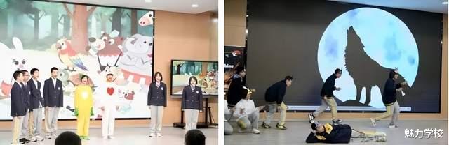 《The Turtle and the Hare》以“兔子沉迷社交软件分心误赛”的现代改编,让“稳扎稳打”的古老训诫跳出传统语境,增添了青春世代的鲜活注解,使经典哲理与当下生活产生强烈共鸣;《The wolf is coming》则以夸张诙谐的肢体语言、灵动鲜活的台词设计,将“诚信”的核心要义融入阵阵笑声里,摒弃生硬说教,让道理在轻松欢乐的氛围中自然浸润,实现了教育意义与观赏体验的双赢。