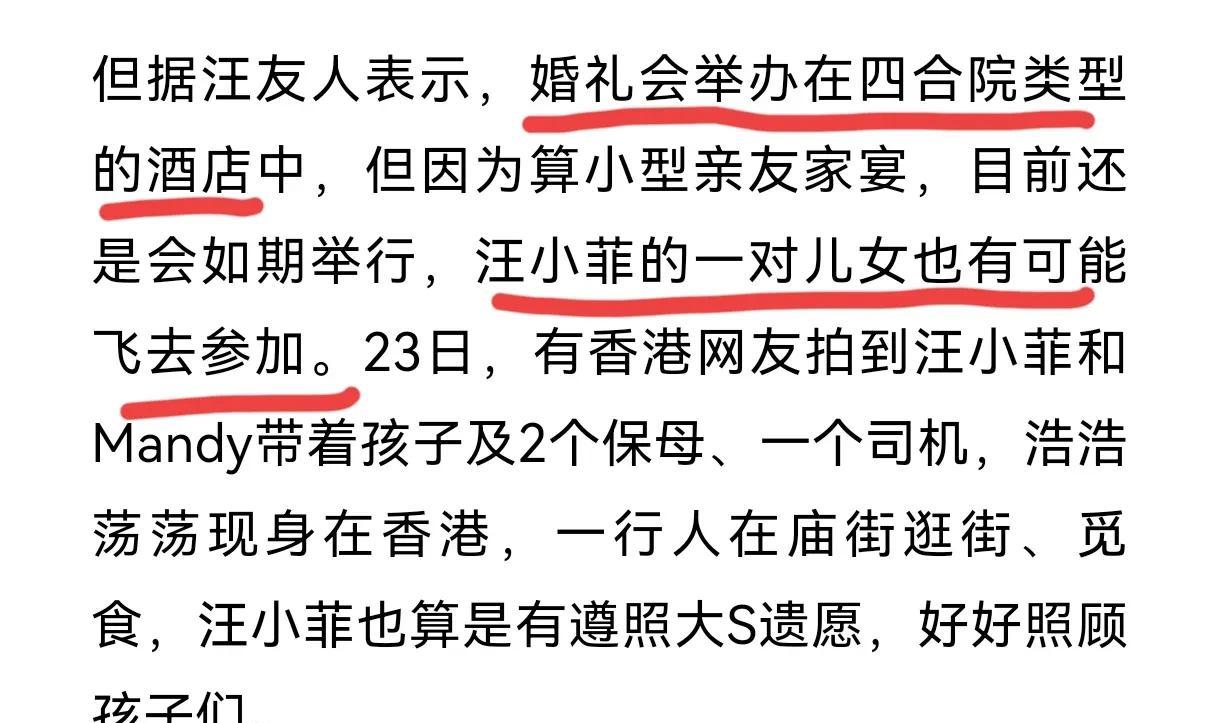 但在大S的离世阴影下,这一婚礼是否如期举行,以及孩子们会不会到场等问题,显得尤为复杂和吸引人。