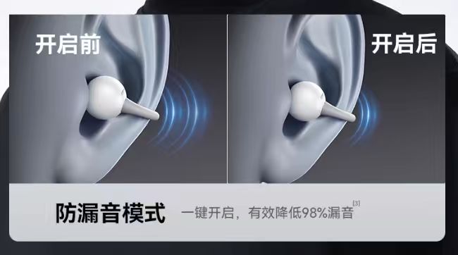 耳夹式耳机不是封闭式的耳机,它的喇叭是耳道口外的,声音通过空气传播进入耳朵里,不可避免地会有声音向外扩散到周围,离得近的人就有可能听到。不过在选择时可以注意一下耳机的防漏音方案,例如虹觅自研的防漏音模式和华为的逆声场声学系统,可以有效降低漏音情况。