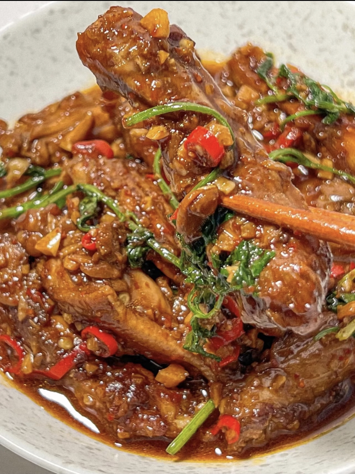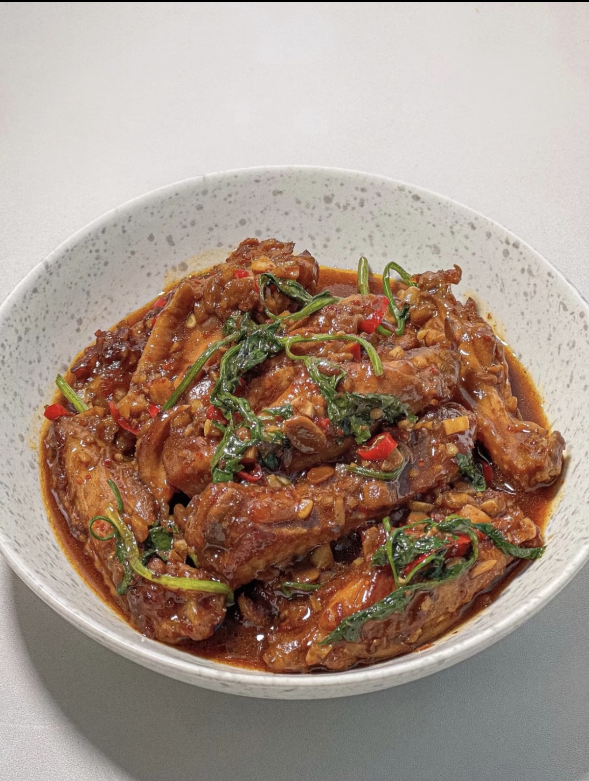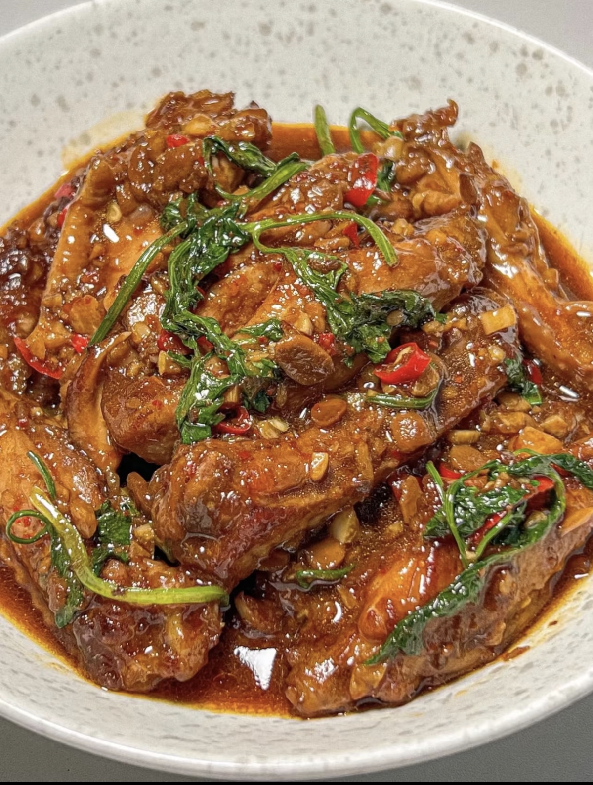 鸡翅煎好后,把姜蒜、小米辣倒进去,瞬间爆香!那一瞬间的烟火气,就是家的味道。