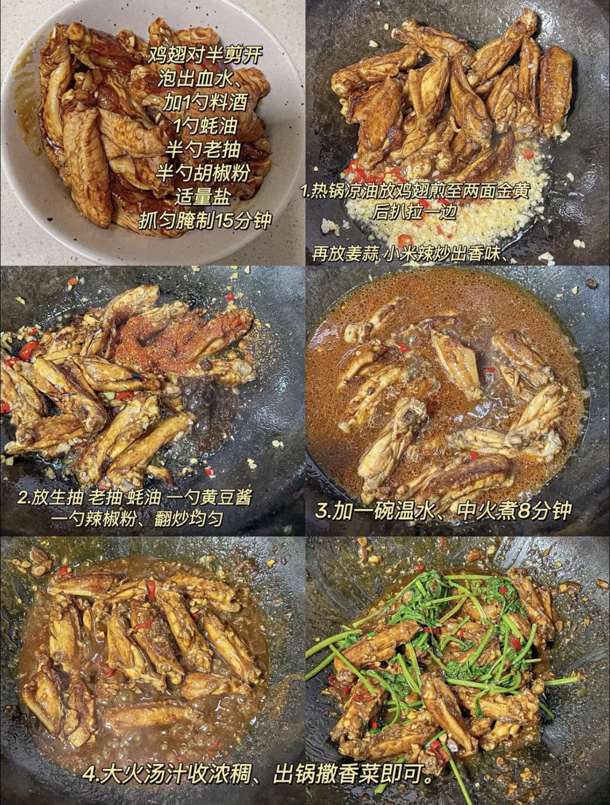最后开大火收汁!汤汁浓稠地挂在鸡翅上,油亮亮的,看着就流口水。出锅前撒上一把香菜,颜值瞬间拉满!