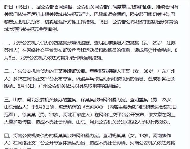 2024年,在网上多次造谣污蔑运动员的“喷子们”已经被警方行政拘留,受到了应有的处罚。