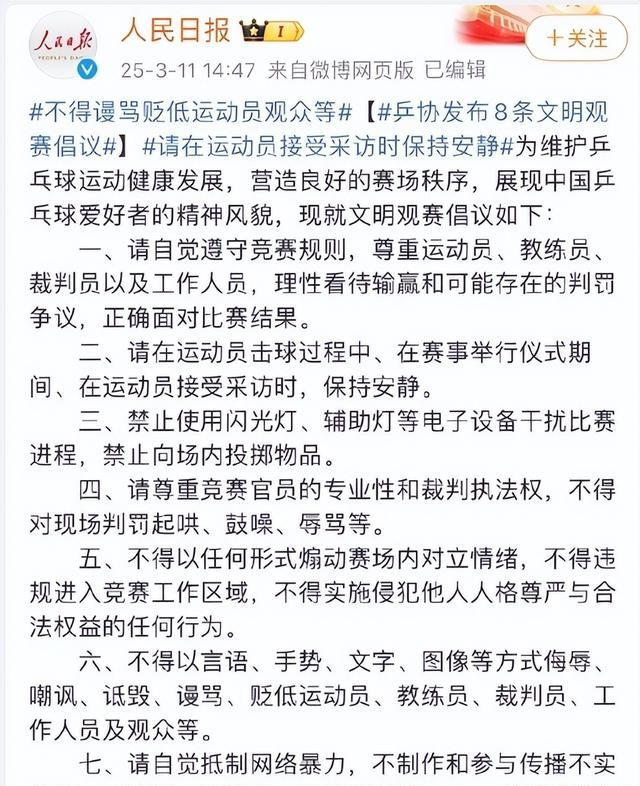 2025年3月,人民日报还专门出台了7条新规管粉丝,要求赛场保持秩序。