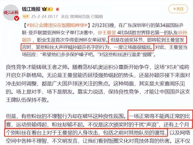 先是王曼昱、后有孙颖莎,饭圈文化体育化真就“没完了”?
