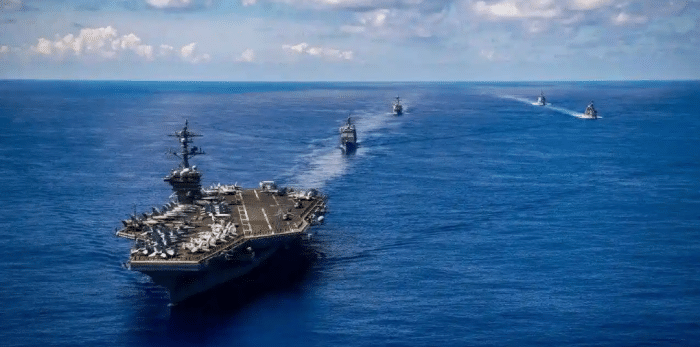 然而,就在台军舰艇出动之际,“天权星”舰却突然转向,不再继续向苏澳军港航行,而是由西向转为南向,快速驶往菲律宾海方向。这一转向让台军如释重负,但也引发了新的猜测。岛内媒体分析认为,“天权星”舰的真正目标并非台东的军事设施,而是正在赶往中东执行任务的美国海军“卡尔·文森”号航母打击群。