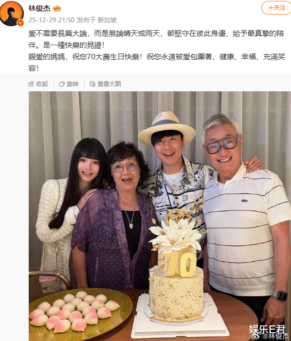 12月29日晚,华语乐坛顶流天王、新加坡国宝级歌手林俊杰官宣恋情,44岁的他在他母亲70大寿之际,宣布即将迎娶一位24岁