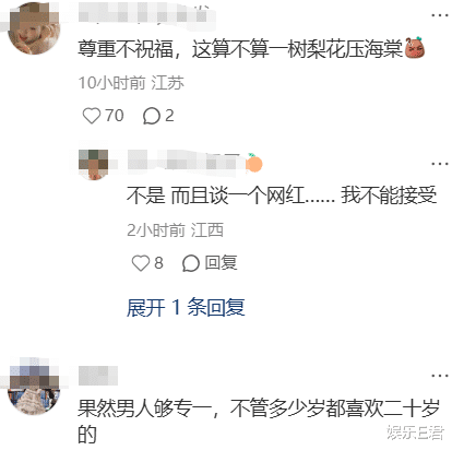还有网友说“男人果然够专一,不管多少岁都喜欢二十岁”“尊重不祝福”。