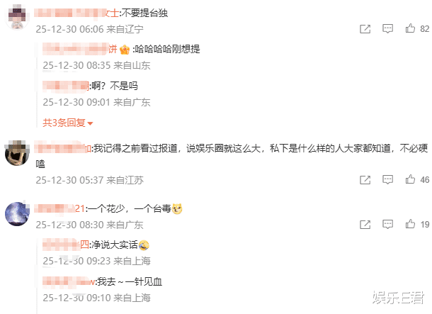 也有网友表示:“娱乐圈就这么大,私下是什么人大家都知道,不必硬嗑。”“一个花少,一个台毒”。